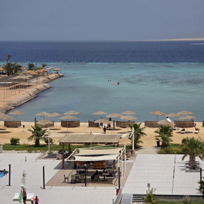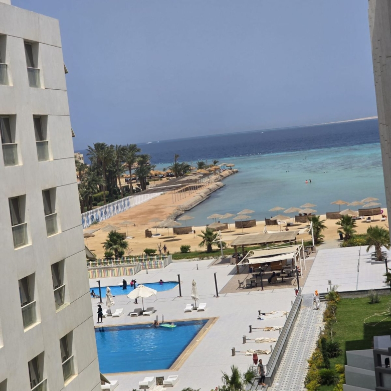 Experience the beauty of the Red Sea right from your window in this fully furnished sea view studio located in the exclusive Scandic Resort in the Arabia district of Hurghada. Positioned directly on the beachfront, this 50 m² unit offers resort-style living with direct access to a private beach, three swimming pools, and full-time reception and security services.